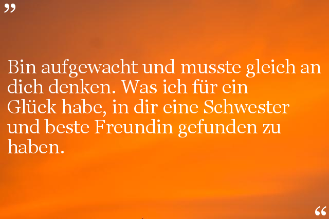 Bin aufgewacht und musste gleich an dich denken. Was ich für ein Glück habe, in dir eine Schwester und beste Freundin gefunden zu haben.