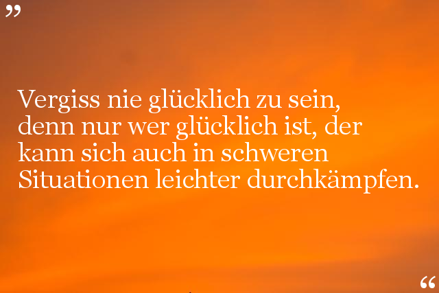 Vergiss nie glücklich zu sein, denn nur wer glücklich ist, der kann sich auch in schweren Situationen leichter durchkämpfen.