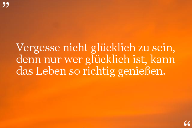 Vergesse nicht glücklich zu sein, denn nur wer glücklich ist, kann das Leben so richtig genießen.