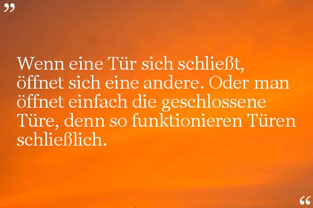 Wenn eine Tür sich schließt, öffnet sich eine andere. Oder man öffnet einfach die geschlossene Türe, denn so funktionieren Türen schließlich.