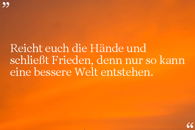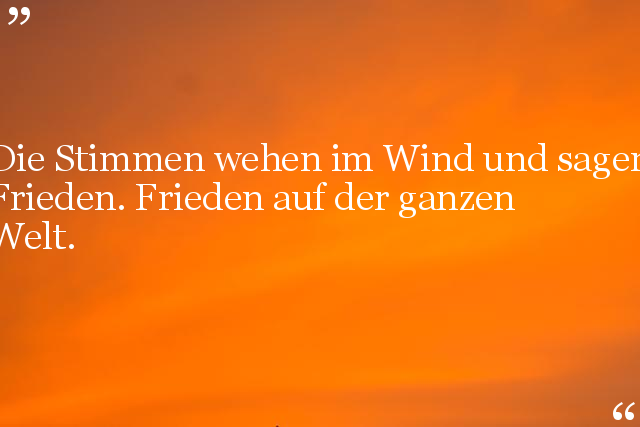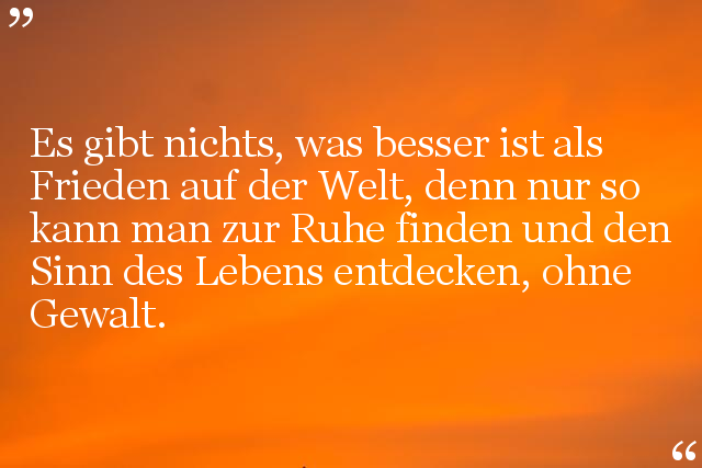 Es gibt nichts, was besser ist als Frieden auf der Welt, denn nur so kann man zur Ruhe finden und den Sinn des Lebens entdecken, ohne Gewalt.
