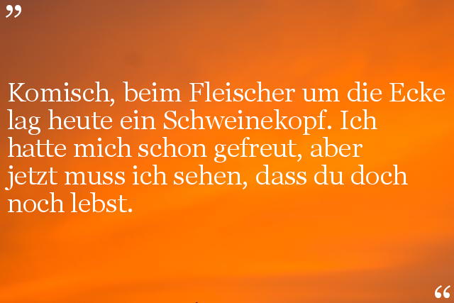Komisch, beim Fleischer um die Ecke lag heute ein Schweinekopf. Ich hatte mich schon gefreut, aber jetzt muss ich sehen, dass du doch noch lebst.