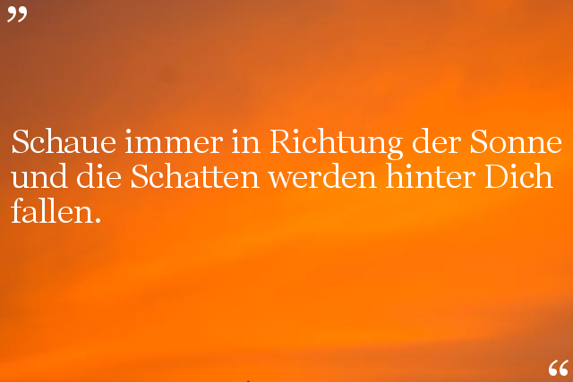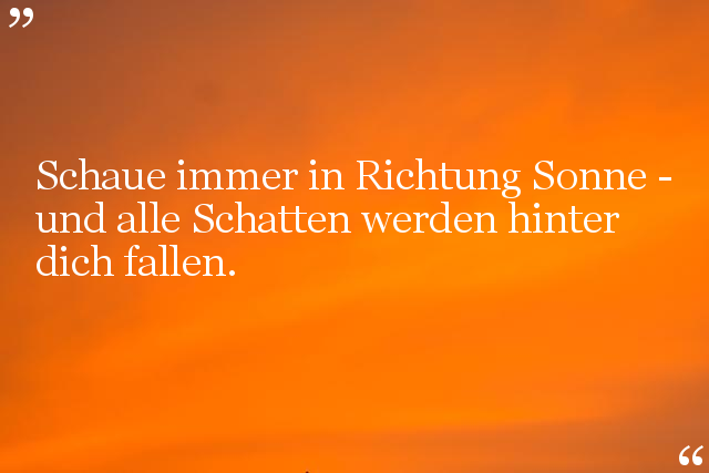 Schaue immer in Richtung Sonne - und alle Schatten werden hinter dich fallen.