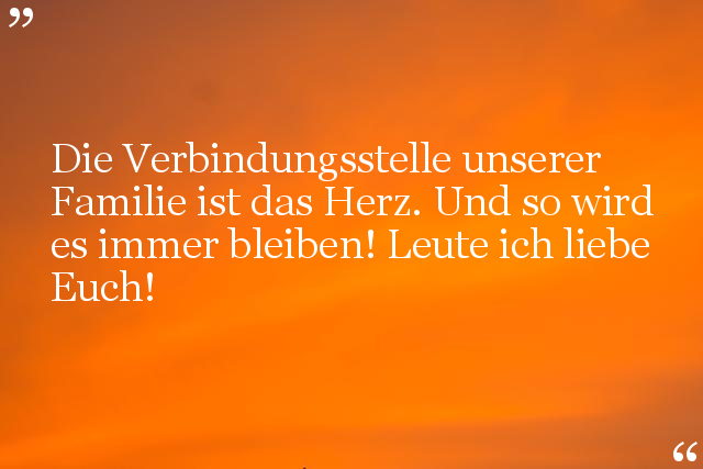 Die Verbindungsstelle unserer Familie ist das Herz. Und so wird es immer bleiben! Leute ich liebe Euch!