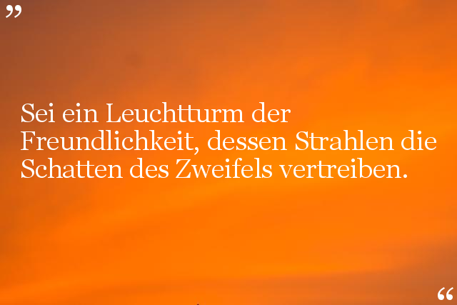 Sei ein Leuchtturm der Freundlichkeit, dessen Strahlen die Schatten des Zweifels vertreiben.