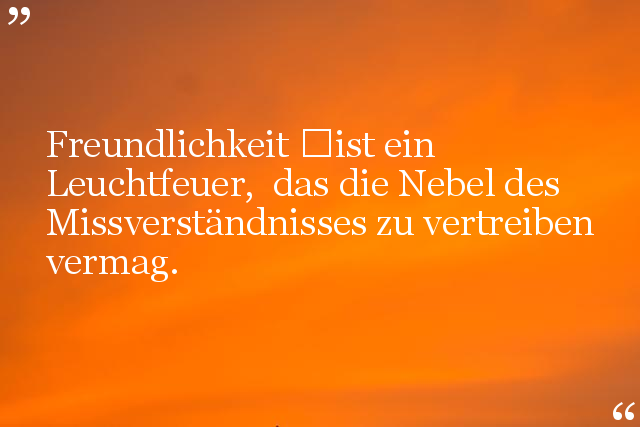 Freundlichkeit ist ein Leuchtfeuer, das die Nebel des Missverständnisses zu vertreiben vermag.