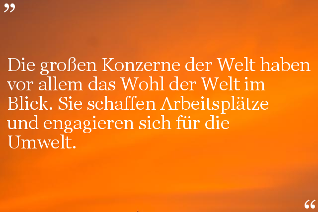 Die großen Konzerne der Welt haben vor allem das Wohl der Welt im Blick. Sie schaffen Arbeitsplätze und engagieren sich für die Umwelt.