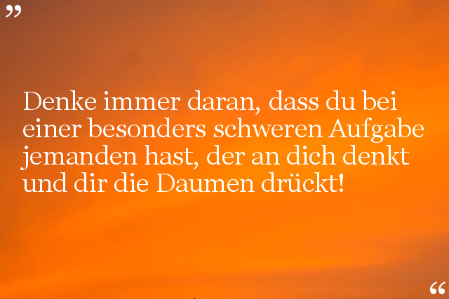 jemanden hast, der an dich denkt und dir die Daumen drückt!