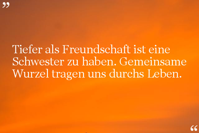 Tiefer als Freundschaft ist eine Schwester zu haben. Gemeinsame Wurzel tragen uns durchs Leben.