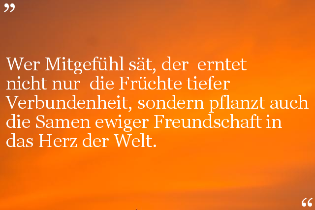Wer Mitgefühl sät, der erntet nicht nur die Früchte tiefer Verbundenheit, sondern pflanzt auch die Samen ewiger Freundschaft in das Herz der Welt.