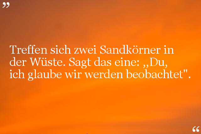 Treffen sich zwei Sandkörner in der Wüste. Sagt das eine: ,,Du, ich glaube wir werden beobachtet".