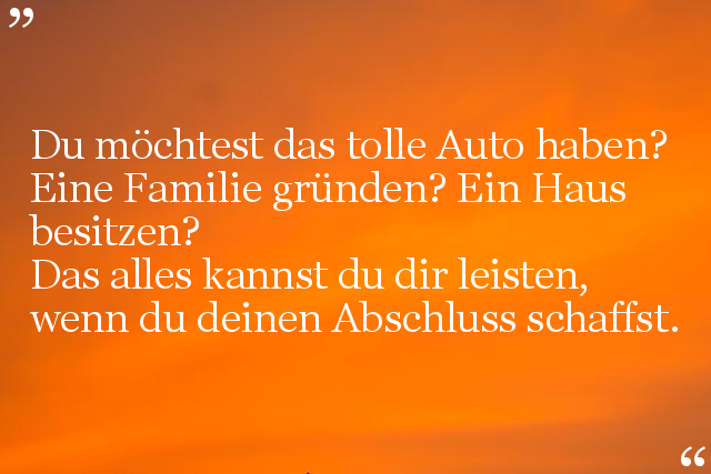 Das alles kannst du dir leisten, wenn du deinen Abschluss schaffst.