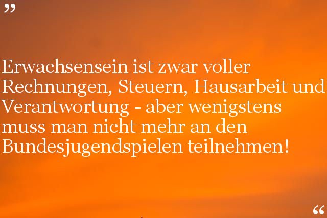 Erwachsensein ist zwar voller Rechnungen, Steuern, Hausarbeit und Verantwortung - aber wenigstens muss man nicht mehr an den Bundesjugendspielen teilnehmen!