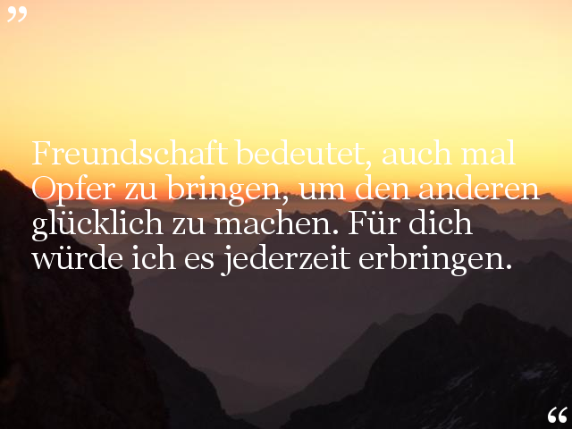 Freundschaft bedeutet, auch mal Opfer zu bringen, um den anderen glücklich zu machen. Für dich würde ich es jederzeit erbringen.