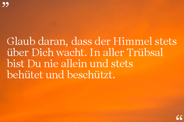 Glaub daran, dass der Himmel stets über Dich wacht. In aller Trübsal bist Du nie allein und stets behütet und beschützt.