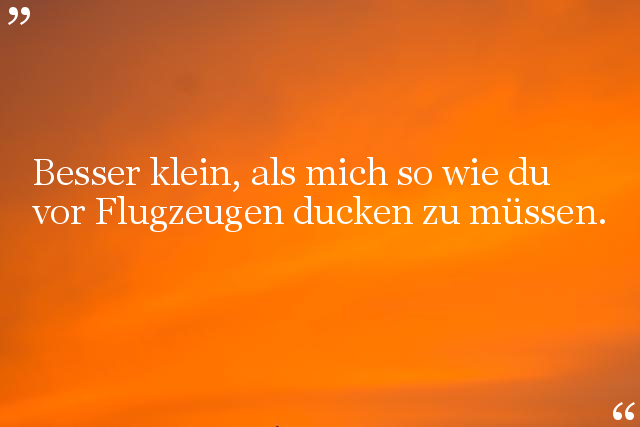 Besser klein, als mich so wie du vor Flugzeugen ducken zu müssen.