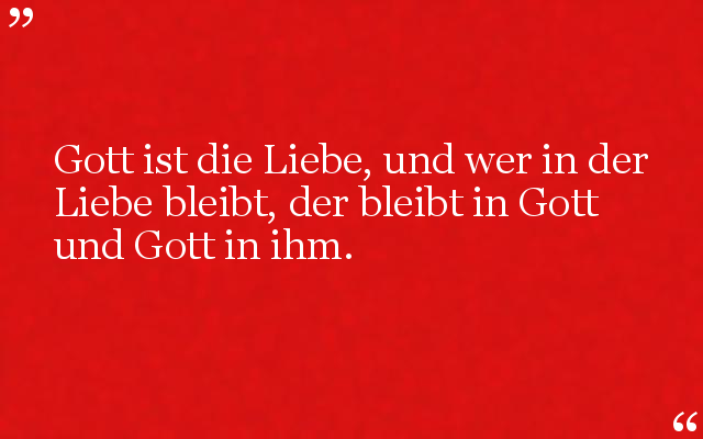 Gott ist die Liebe, und wer in der Liebe bleibt, der bleibt in Gott und Gott in ihm.