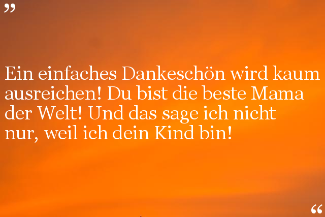 Ein einfaches Dankeschön wird kaum ausreichen! Du bist die beste Mama der Welt! Und das sage ich nicht nur, weil ich dein Kind bin!