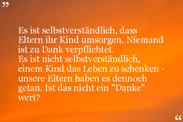 Es ist nicht selbstverständlich, einem Kind das Leben zu schenken - unsere Eltern haben es dennoch getan. Ist das nicht ein "Danke" wert?
