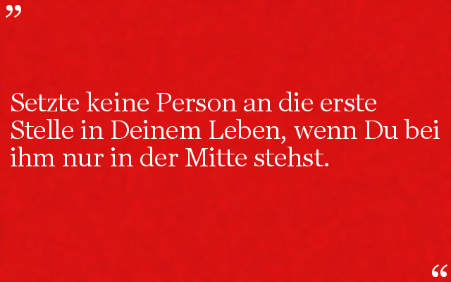 Setzte keine Person an die erste Stelle in Deinem Leben, wenn Du bei ihm nur in der Mitte stehst.
