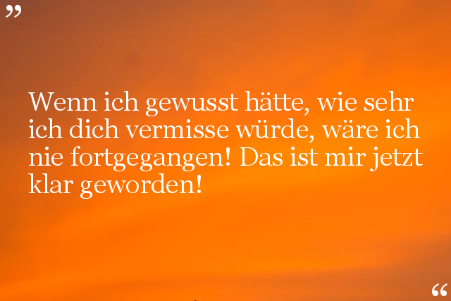 Wenn ich gewusst hätte, wie sehr ich dich vermisse würde, wäre ich nie fortgegangen! Das ist mir jetzt klar geworden!