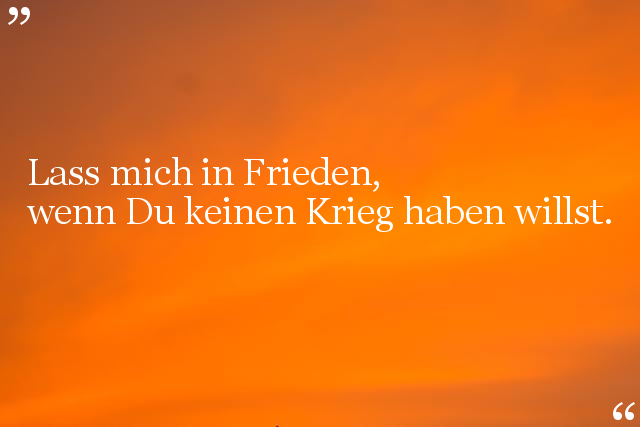 Liebe, Menschlichkeit und Frieden sind drei wichtige Dinge, die man sehen muss, statt in einem Krieg zu kämpfen, der für viele sinnlos ist.