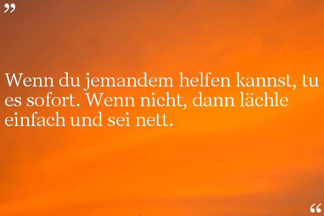 Wenn du jemandem helfen kannst, tu es sofort. Wenn nicht, dann lächle einfach und sei nett.