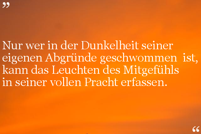 Nur wer in der Dunkelheit seiner eigenen Abgründe geschwommen ist, kann das Leuchten des Mitgefühls in seiner vollen Pracht erfassen.