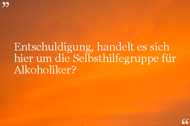 Entschuldigung, handelt es sich hier um die Selbsthilfegruppe für Alkoholiker?