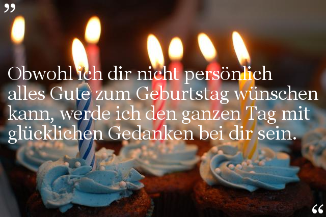 Obwohl ich dir nicht persönlich alles Gute zum Geburtstag wünschen kann, werde ich den ganzen Tag mit glücklichen Gedanken bei dir sein.