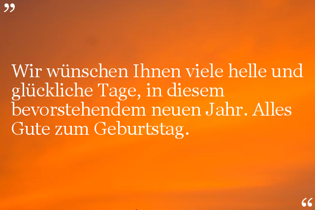 Wir wünschen Ihnen viele helle und glückliche Tage, in diesem bevorstehendem neuen Jahr. Alles Gute zum Geburtstag.