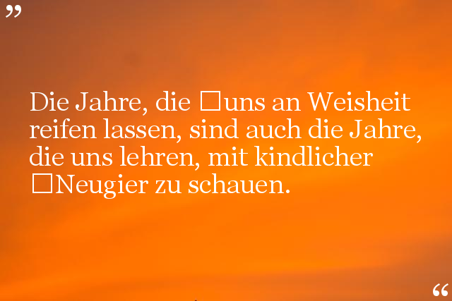 Die Jahre, die uns an Weisheit reifen lassen, sind auch die Jahre, die uns lehren, mit kindlicher Neugier zu schauen.