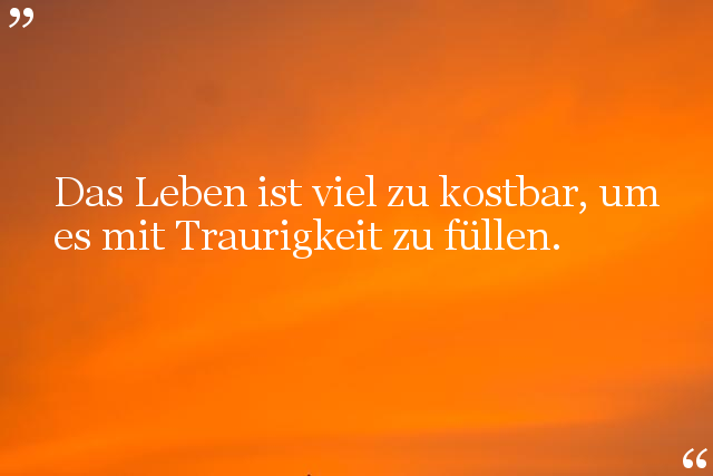 Das Leben ist viel zu kostbar, um es mit Traurigkeit zu füllen.