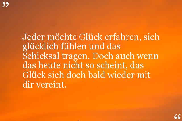 Jeder möchte Glück erfahren, sich glücklich fühlen und das Schicksal tragen. Doch auch wenn das heute nicht so scheint, das Glück sich doch bald wieder mit dir vereint.