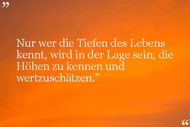 Nur wer die Tiefen des Lebens kennt, wird in der Lage sein, die Höhen zu kennen und wertzuschätzen."