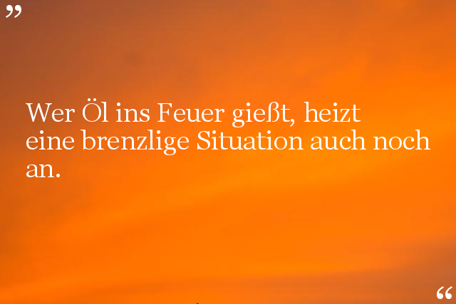 Wer Öl ins Feuer gießt, heizt eine brenzlige Situation auch noch an.