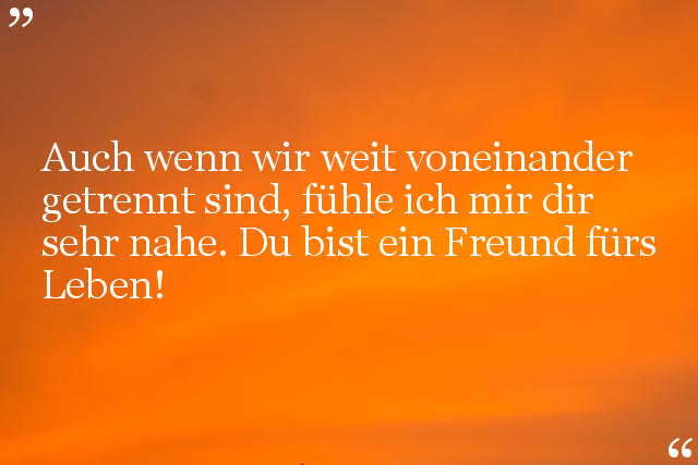 Auch wenn wir weit voneinander getrennt sind, fühle ich mir dir sehr nahe. Du bist ein Freund fürs Leben!