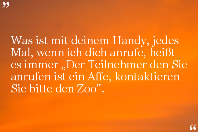 Was ist mit deinem Handy, jedes Mal, wenn ich dich anrufe, heißt es immer „Der Teilnehmer den Sie anrufen ist ein Affe, kontaktieren Sie bitte den Zoo".
