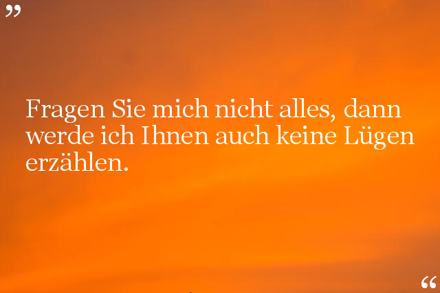 Fragen Sie mich nicht alles, dann werde ich Ihnen auch keine Lügen erzählen.