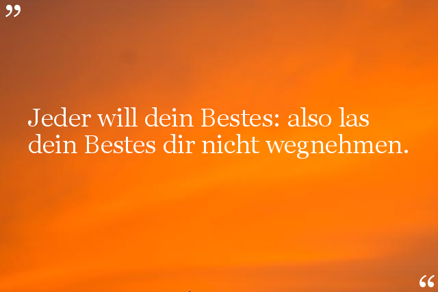 Jeder will dein Bestes: also las dein Bestes dir nicht wegnehmen.