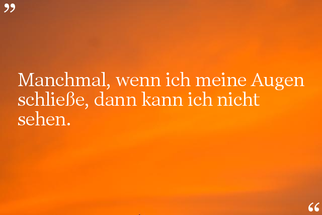 Manchmal, wenn ich meine Augen schließe, dann kann ich nicht sehen.
