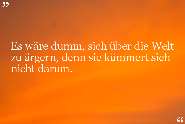 Es wäre dumm, sich über die Welt zu ärgern, denn sie kümmert sich nicht darum.