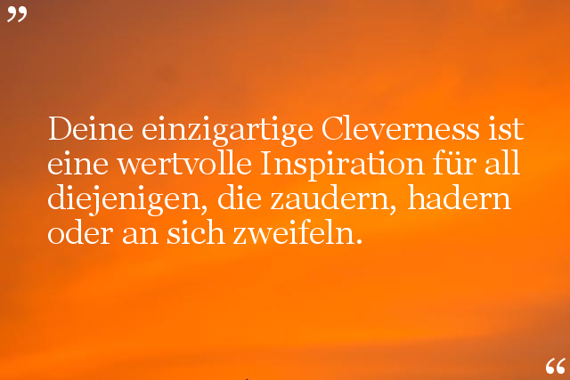 Deine einzigartige Cleverness ist eine wertvolle Inspiration für all diejenigen, die zaudern, hadern oder an sich zweifeln.