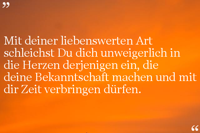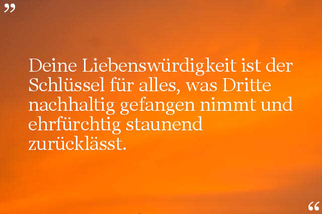 Deine Liebenswürdigkeit ist der Schlüssel für alles, was Dritte nachhaltig gefangen nimmt und ehrfürchtig staunend zurücklässt.
