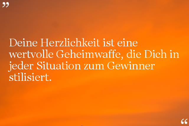 Deine Herzlichkeit ist eine wertvolle Geheimwaffe, die Dich in jeder Situation zum Gewinner stilisiert.