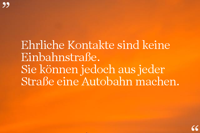 Ehrliche Kontakte sind keine Einbahnstraße.