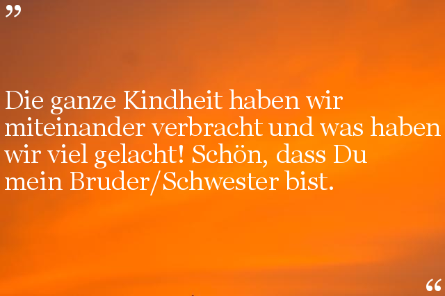Die ganze Kindheit haben wir miteinander verbracht und was haben wir viel gelacht! Schön, dass Du mein Bruder/Schwester bist.