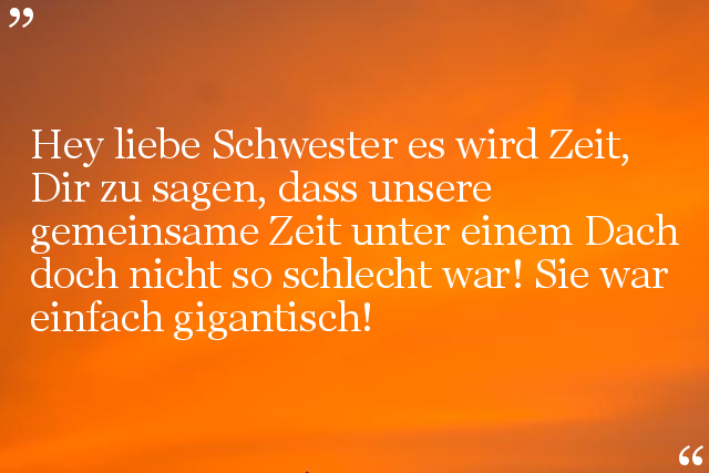 Hey liebe Schwester es wird Zeit, Dir zu sagen, dass unsere gemeinsame Zeit unter einem Dach doch nicht so schlecht war! Sie war einfach gigantisch!