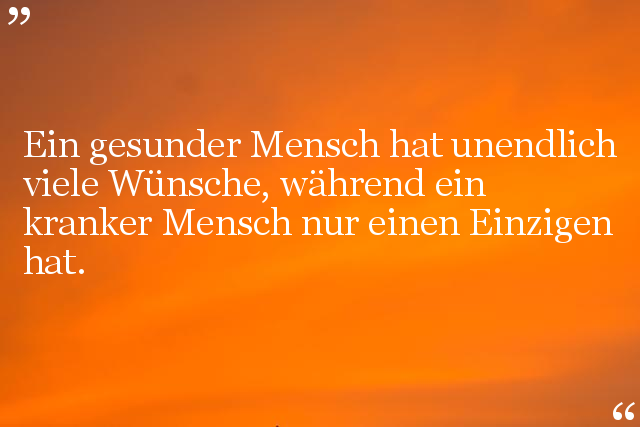 Ein gesunder Mensch hat unendlich viele Wünsche, während ein kranker Mensch nur einen Einzigen hat.