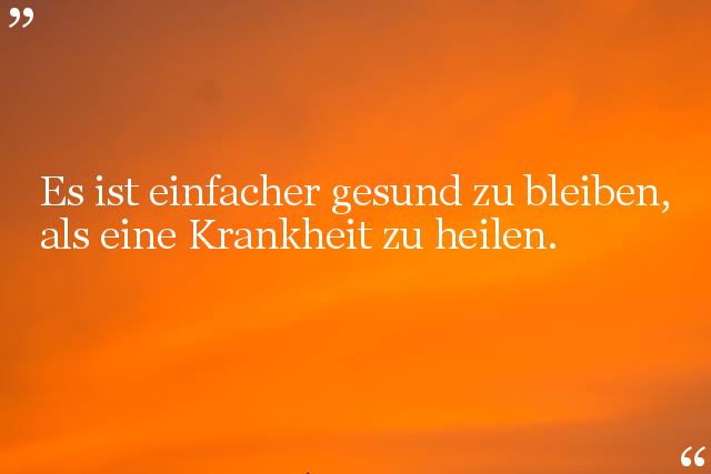 Es ist einfacher gesund zu bleiben, als eine Krankheit zu heilen.